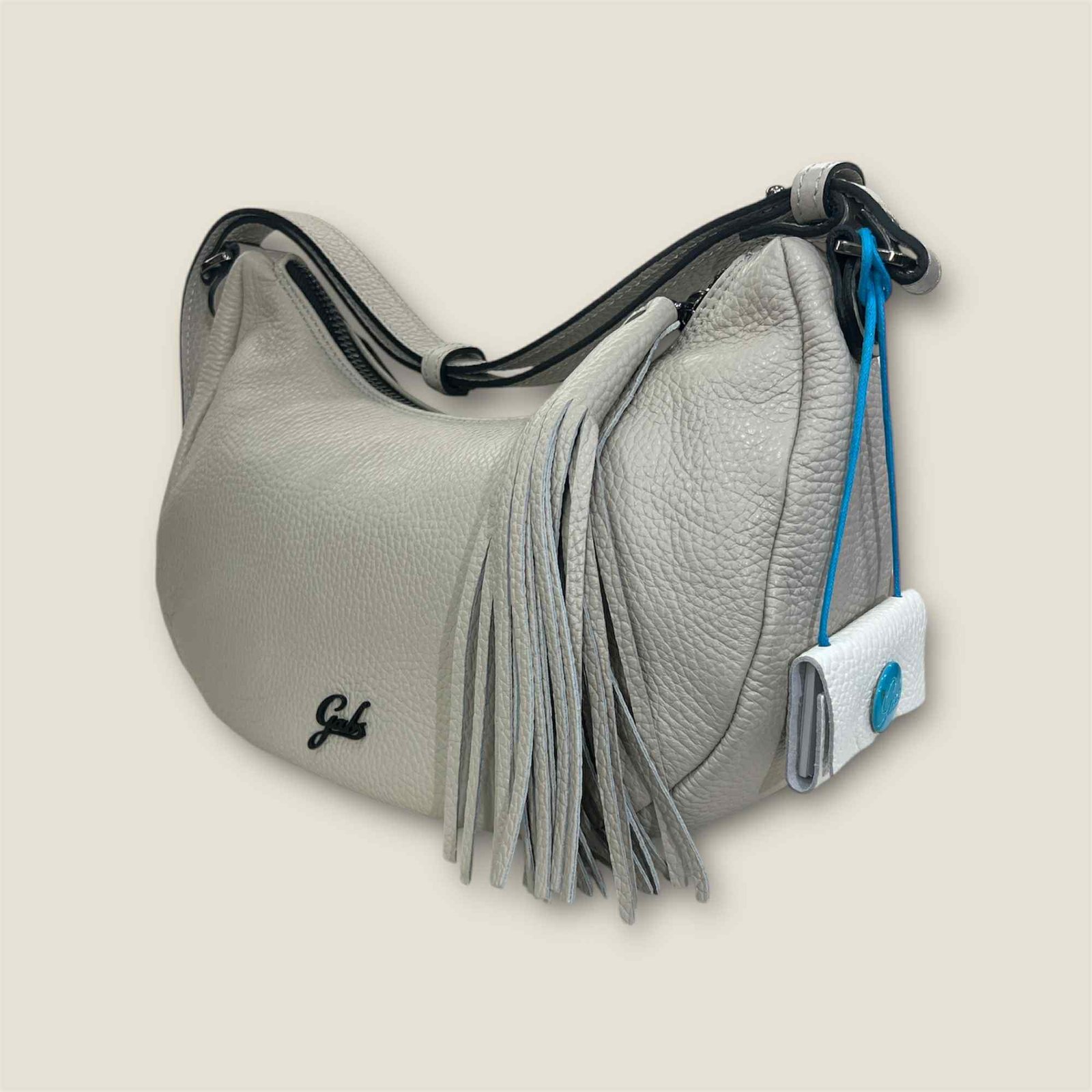 Δερμάτινη τσάντα ώμου (shoulder bag) με ανθρακί λεπτομέρειες