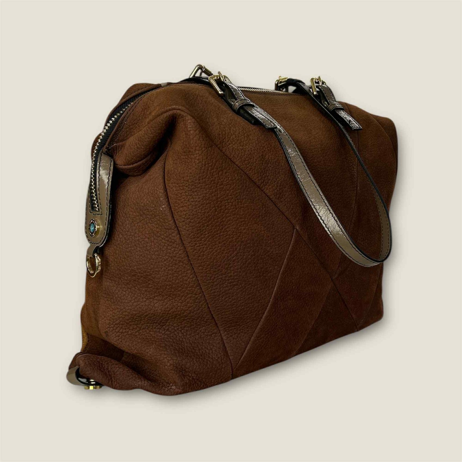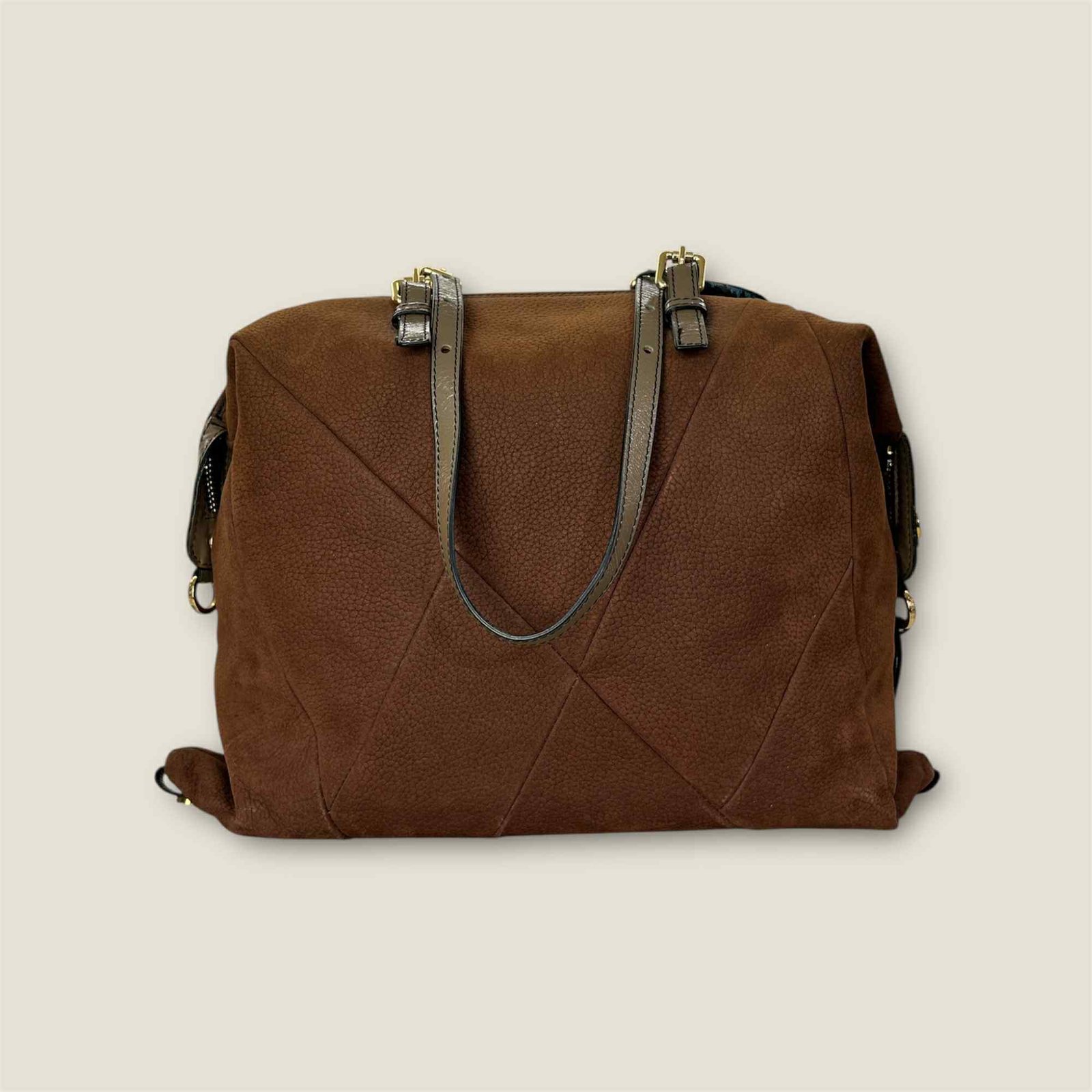 Δερμάτινη πολυμορφική τσάντα (Polymorph bag) με χρυσές λεπτομέρειες